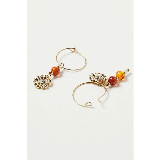 Oliver Bonas Natural Valentina Flower Motif Drop Hoop Earrings