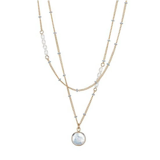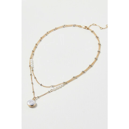 Oliver Bonas Nyla Natural Enamel Bead & Pearl Drop Layered Chain Necklace