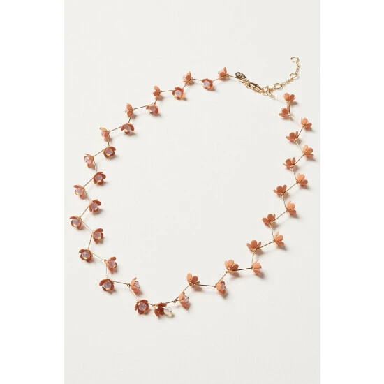 Dainty yet bold, this collar necklace is adorned with pink flowers for a pop of colour to your neckline, and is completed with an adjustable lobster clasp.