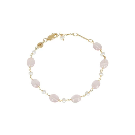 On a gold plated chain, a pearl and blue lace agate stone are alternated. Finished with a lobster clasp, this bracelet is simple and elegant.