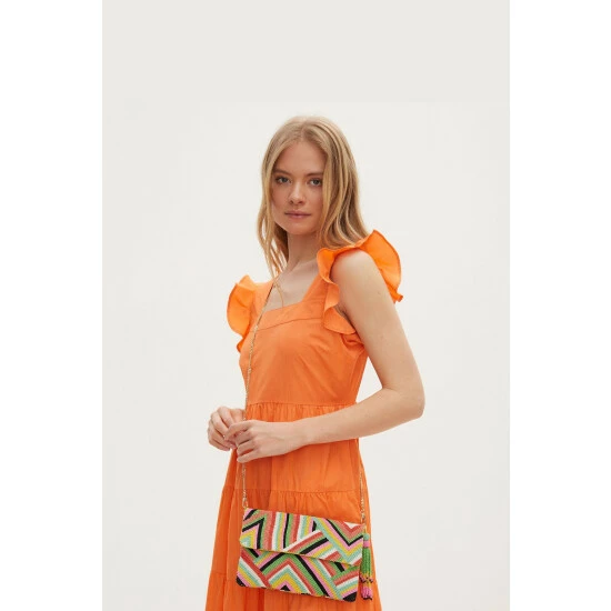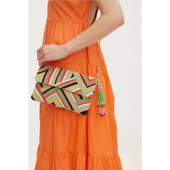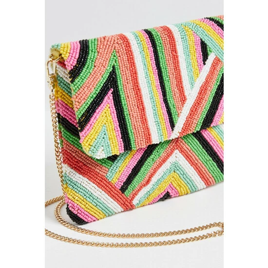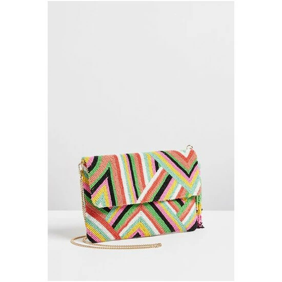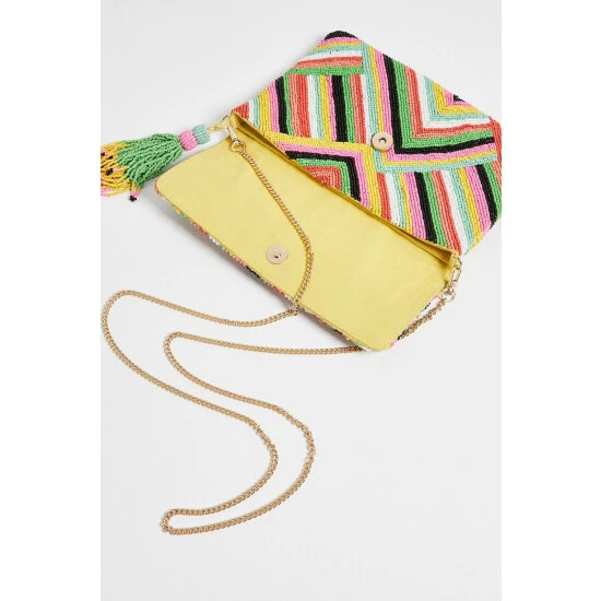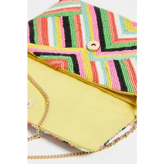 Oliver Bonas Pink Robbie Rainbow Beaded Cotton Clutch Bag
