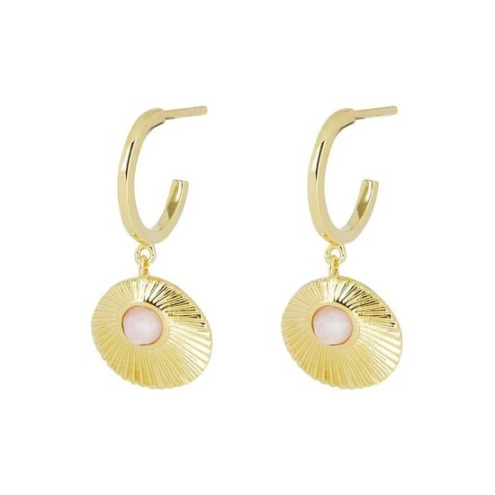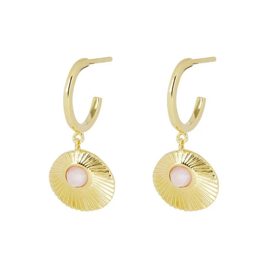 This pair of gold-plated earrings feature fan-shaped drops, detailed with an opal stone inlay and complete with stud backs.