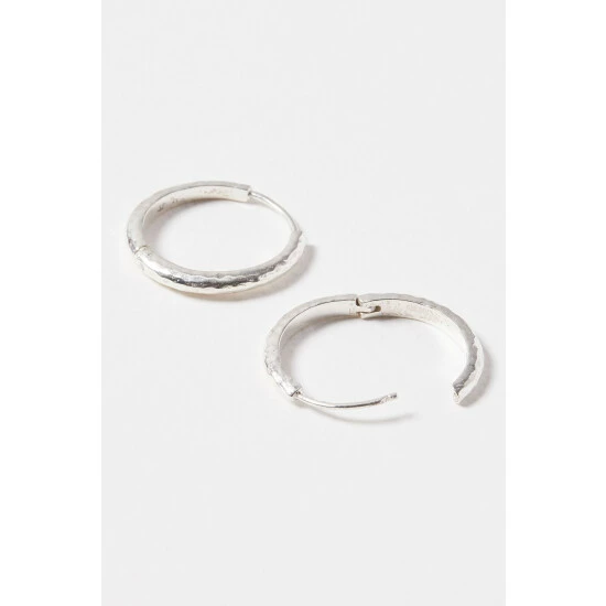 Missing something from your outfit? A hoop earring is the way to go. The large, silver hoop with textured detail is sure to elevate and enhance your look.
