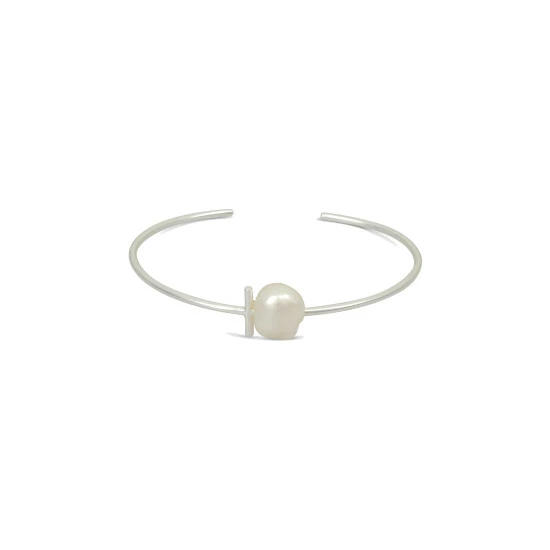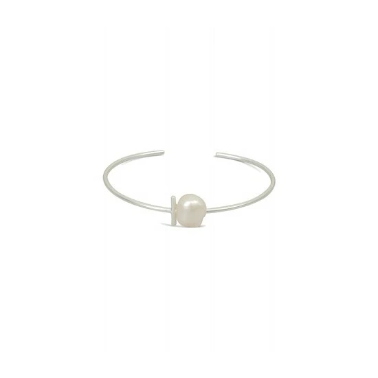Oliver Bonas Silver Almeta Pearl & Bar Silver Plated Brass And Ecoat Bangle