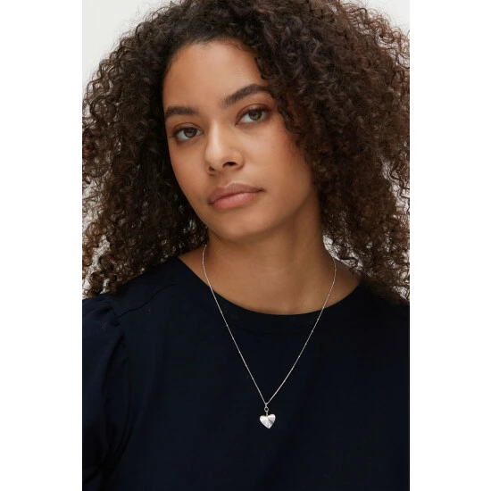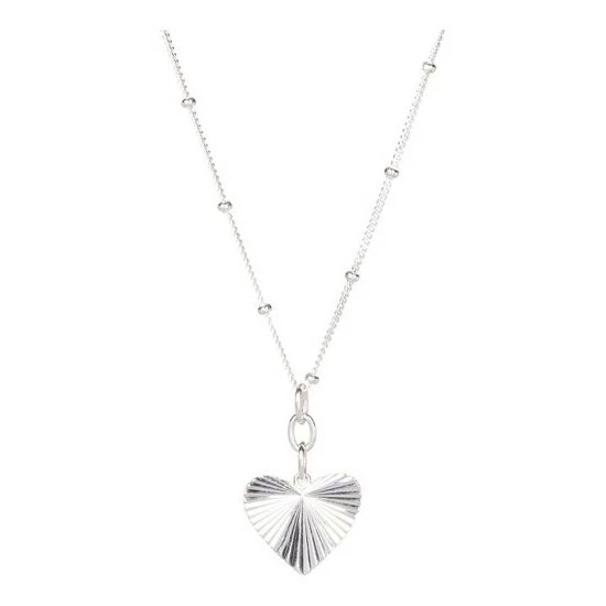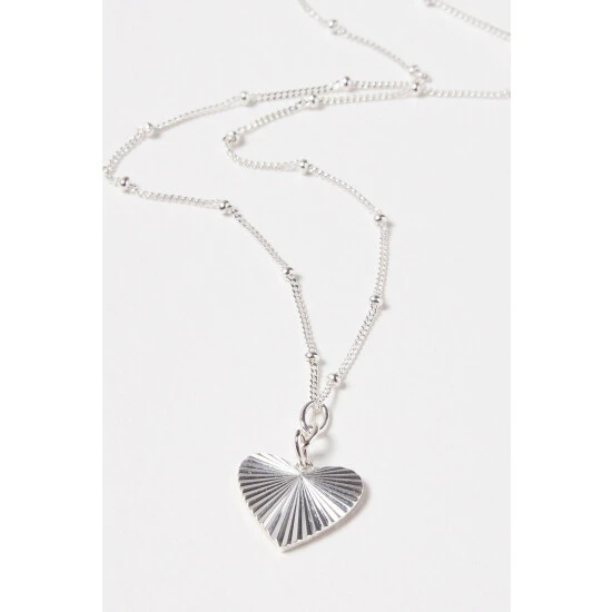 Oliver Bonas Silver Plated Grazia Machine Engraved Heart Charm Necklace
