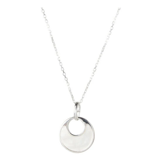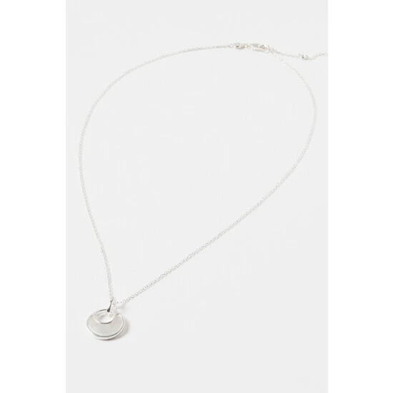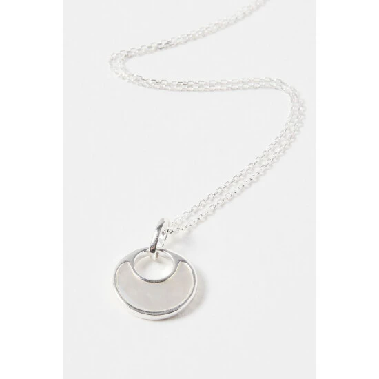Oliver Bonas Silver Tone Francesca Mother Of Pearl Curve Disc Drop Pendant Necklace