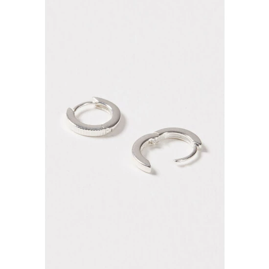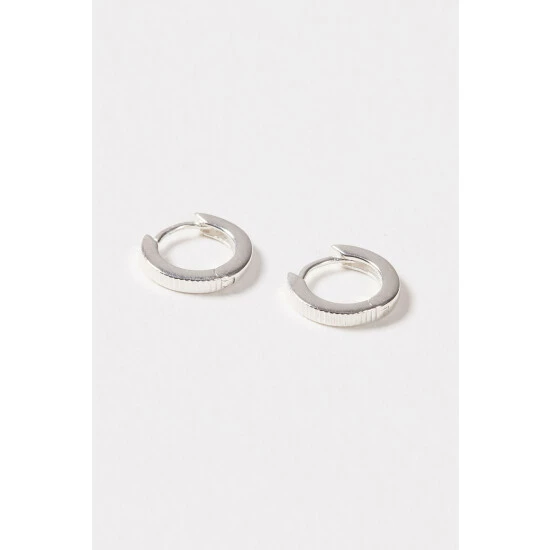 Oliver Bonas Silver Tone Omaira Half Engraved Round Hoop Earrings