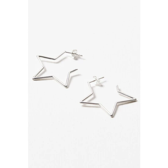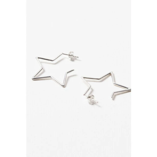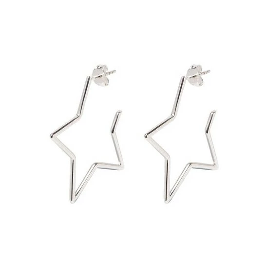 In an 80s style, these silver star outline hoops are made for dancing the night away in.