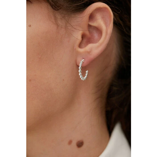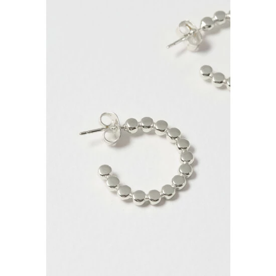 Oliver Bonas Small Silver Tone Ilaria Dot Detail Hoop Earrings
