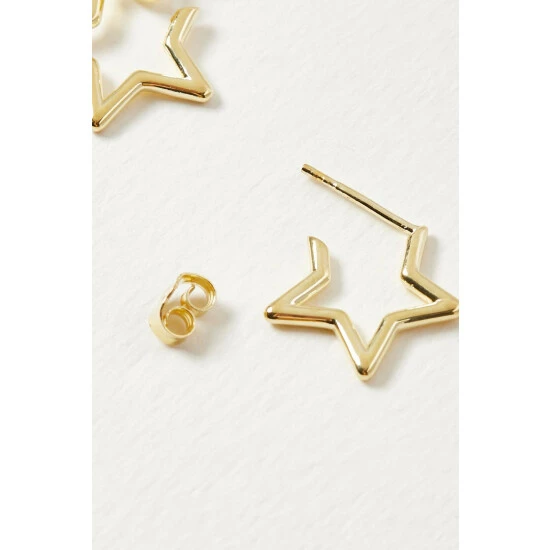 In an 80s style, these gold-toned star outline hoops are made for dancing the night away in.
