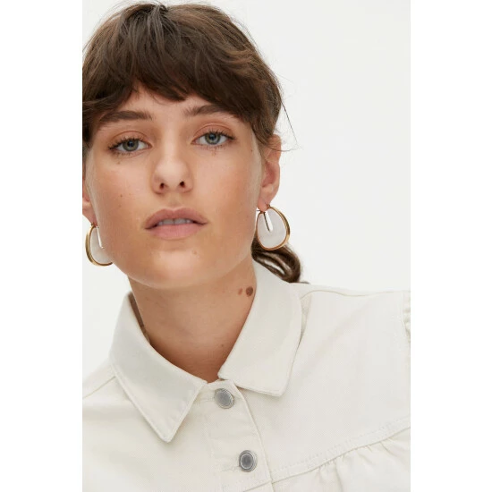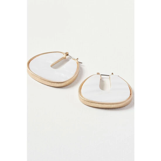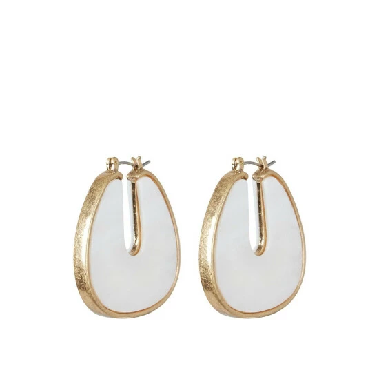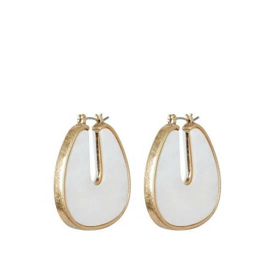 Oliver Bonas White Elle Shell Inlay Flat Hoop Earrings