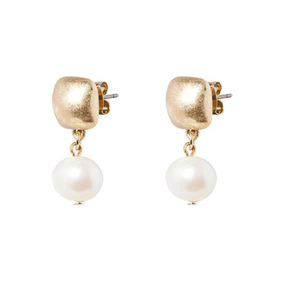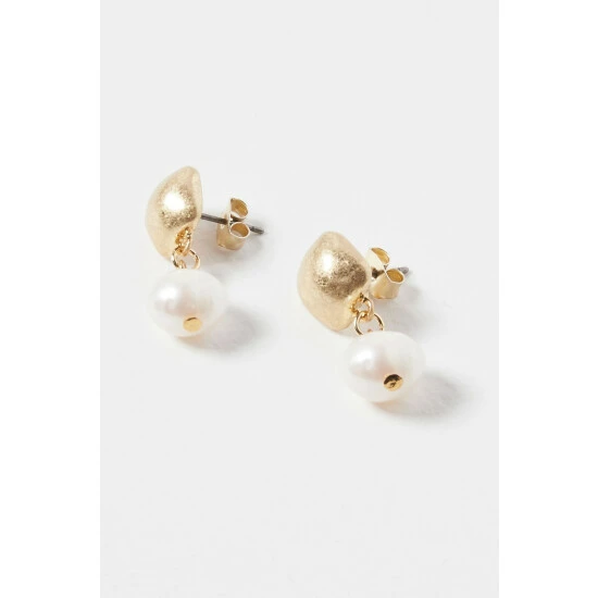 Oliver Bonas White Ottileigh Square And Pearl Drop Stud Earrings