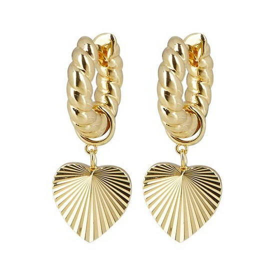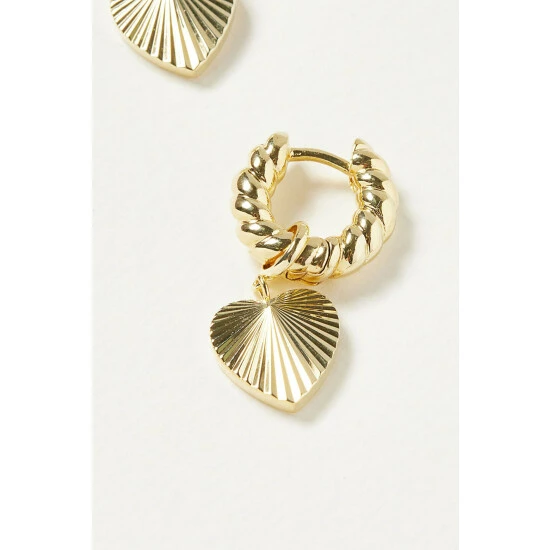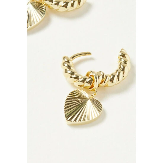 Oliver Bonas Womens Gold Plated Brass Adelaide Chunky Twist Hoop & Heart Charm Drop Earrings