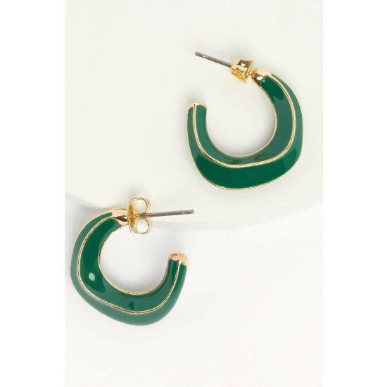 Add a twist to your classic hoop earrings with these enamel hoops in green. With their bold green colour accented with gold tones, the hoop earrings have a stud back with a butterfly fastening.