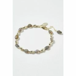 Oliver Bonas Grey Alula Round Labradorite Drop Labradorite, Gold Plated Brass Huggie Earrings