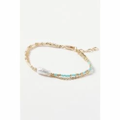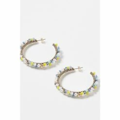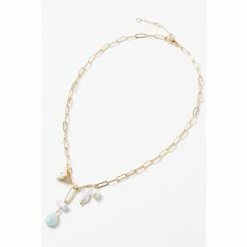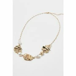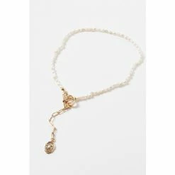 Oliver Bonas Natural Kali Golden And Tort Interlinked Chains And Faux Pearl Drop Hoop Earrings